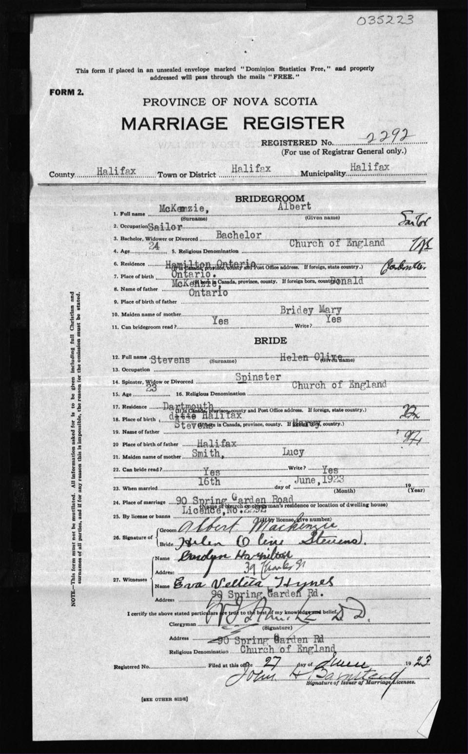 Registration: Year: 1923 number: 35223