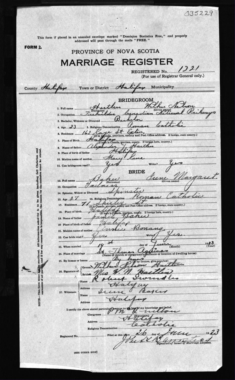 Registration: Year: 1923 number: 35229