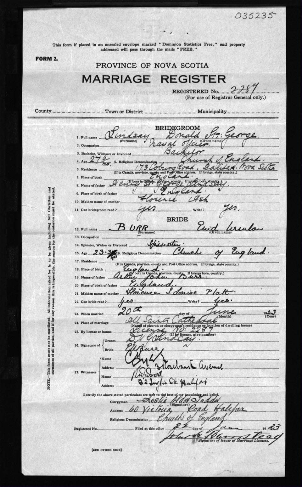 Registration: Year: 1923 number: 35235