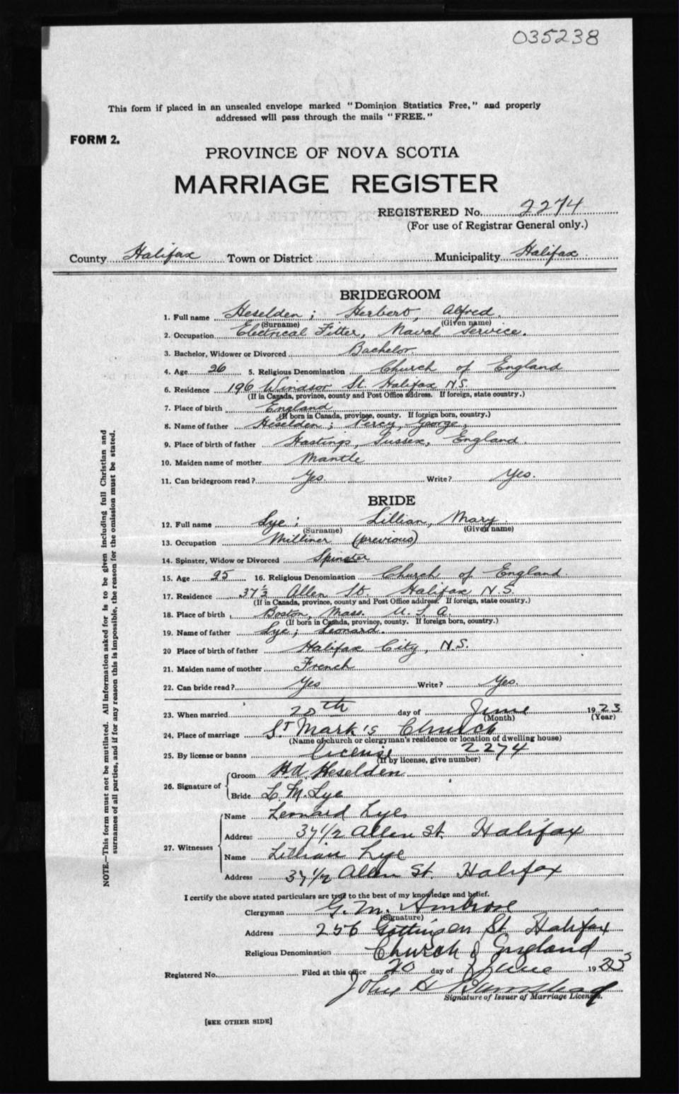 Registration: Year: 1923 number: 35238