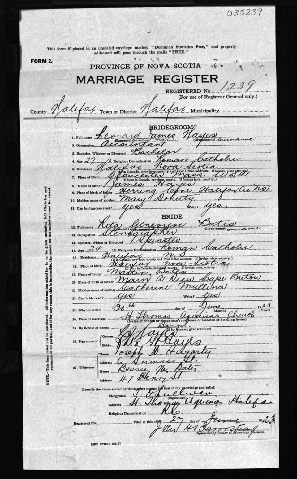 Registration: Year: 1923 number: 35239