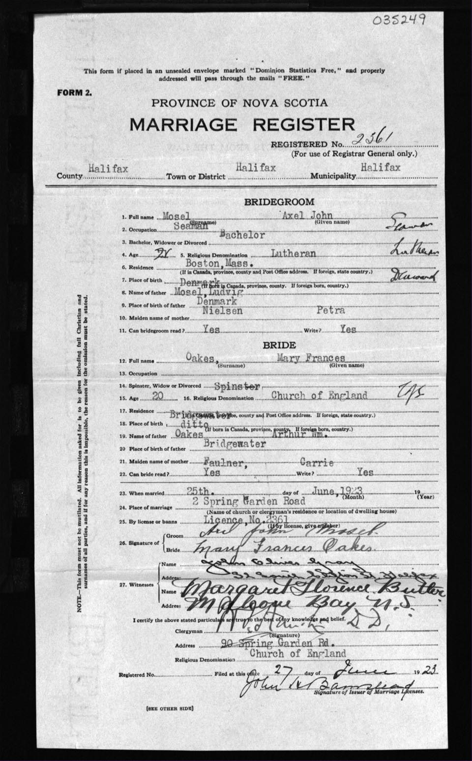 Registration: Year: 1923 number: 35249