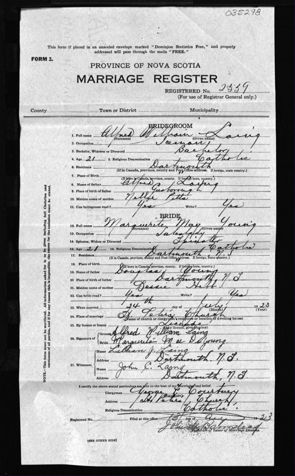 Registration: Year: 1923 number: 35298