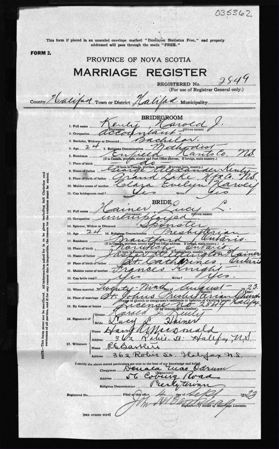 Registration: Year: 1923 number: 35362