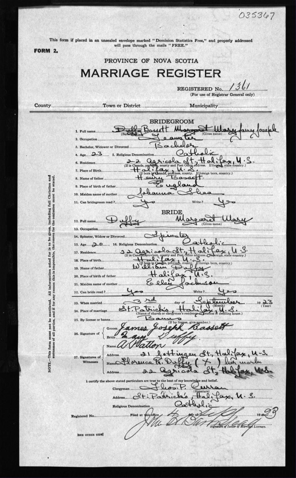 Registration: Year: 1923 number: 35367