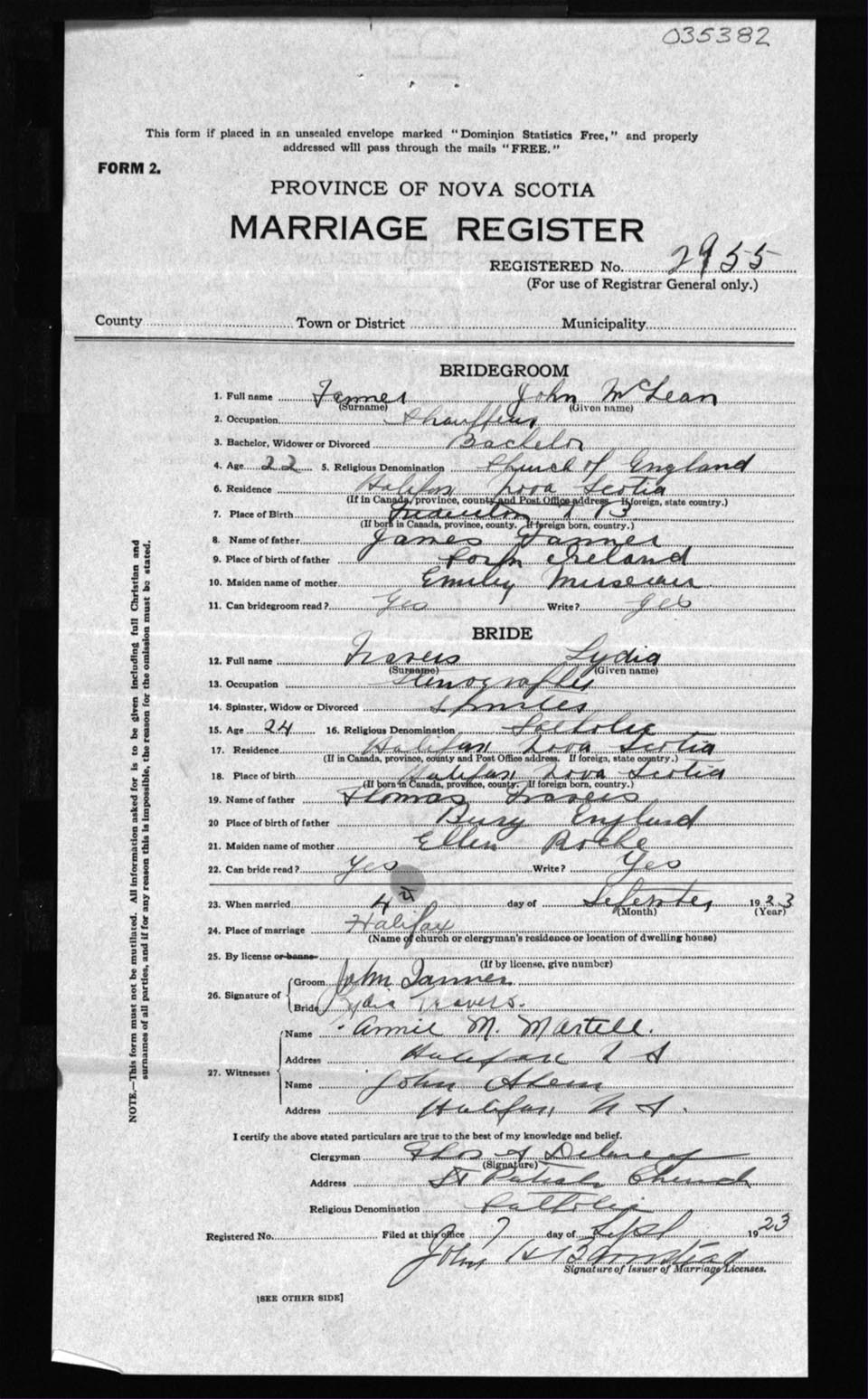 Registration: Year: 1923 number: 35382