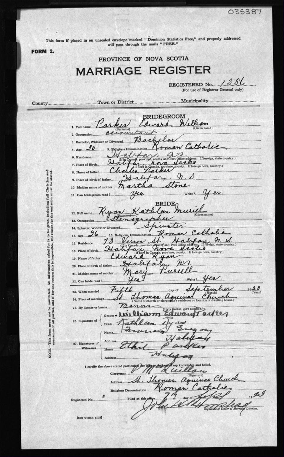 Registration: Year: 1923 number: 35387
