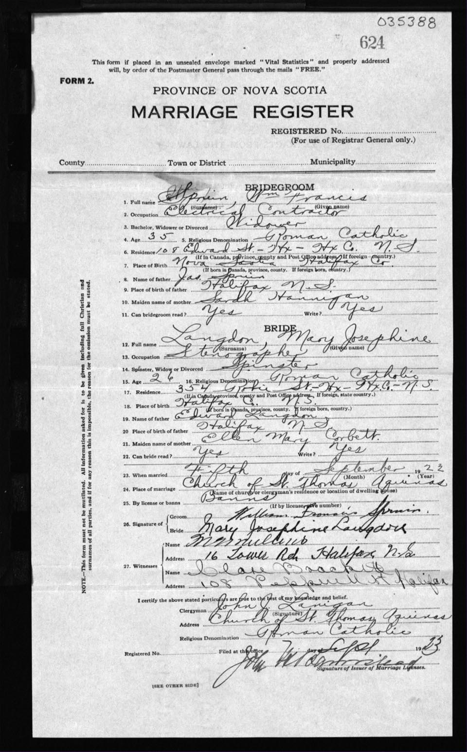 Registration: Year: 1923 number: 35388