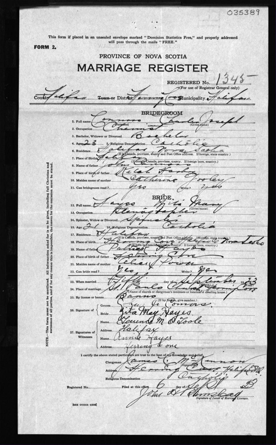 Registration: Year: 1923 number: 35389