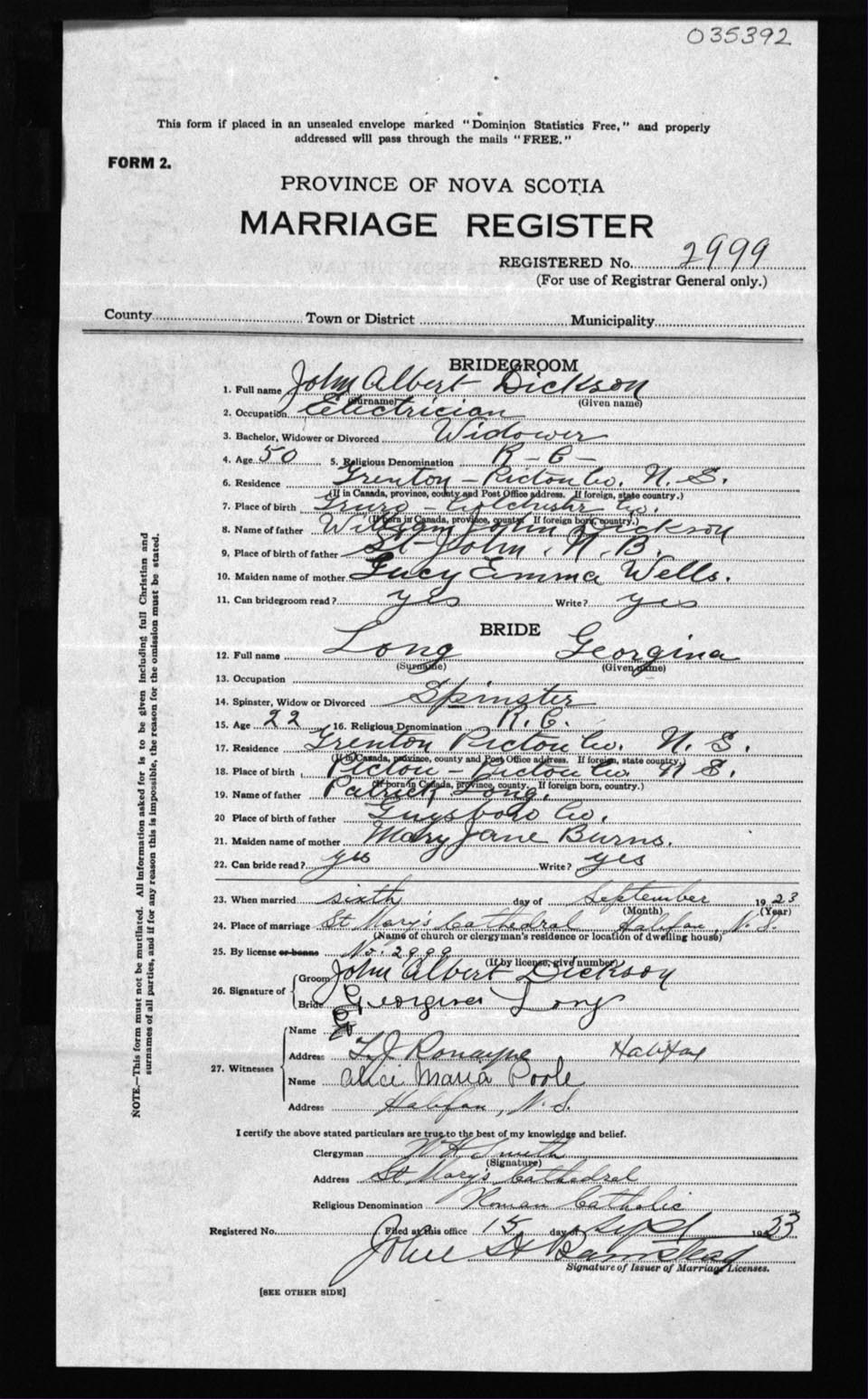 Registration: Year: 1923 number: 35392