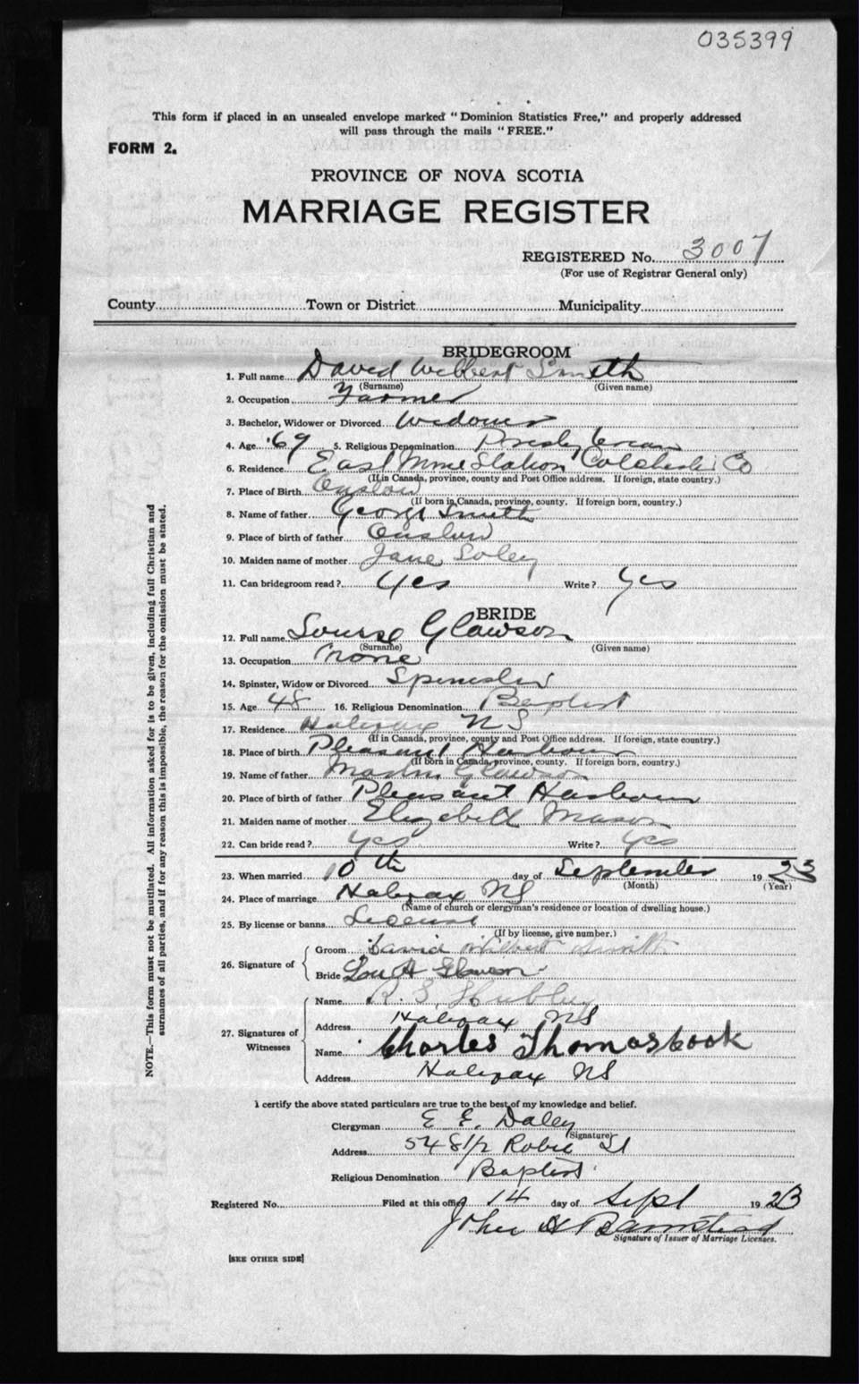 Registration: Year: 1923 number: 35399