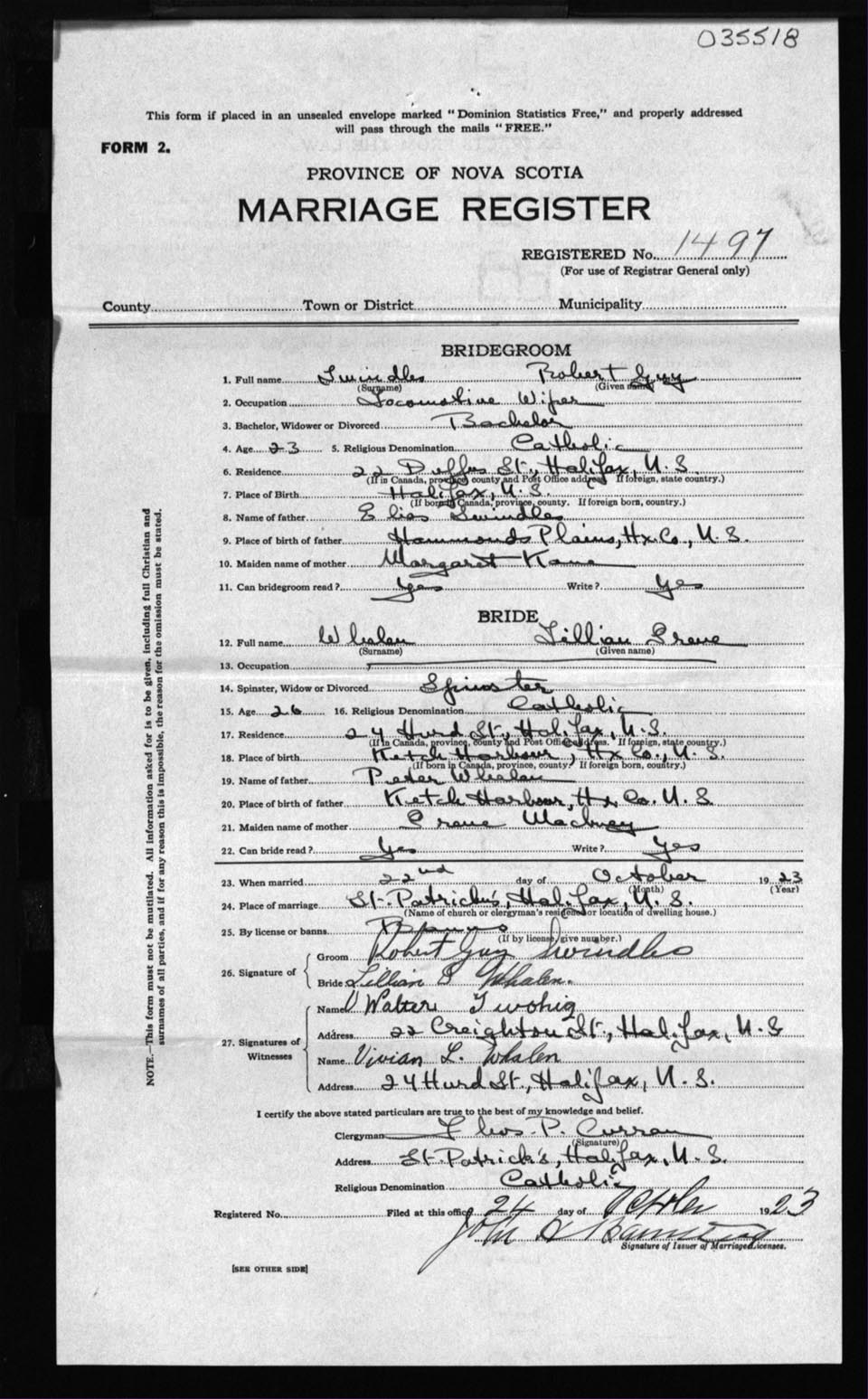 Registration: Year: 1923 number: 35518