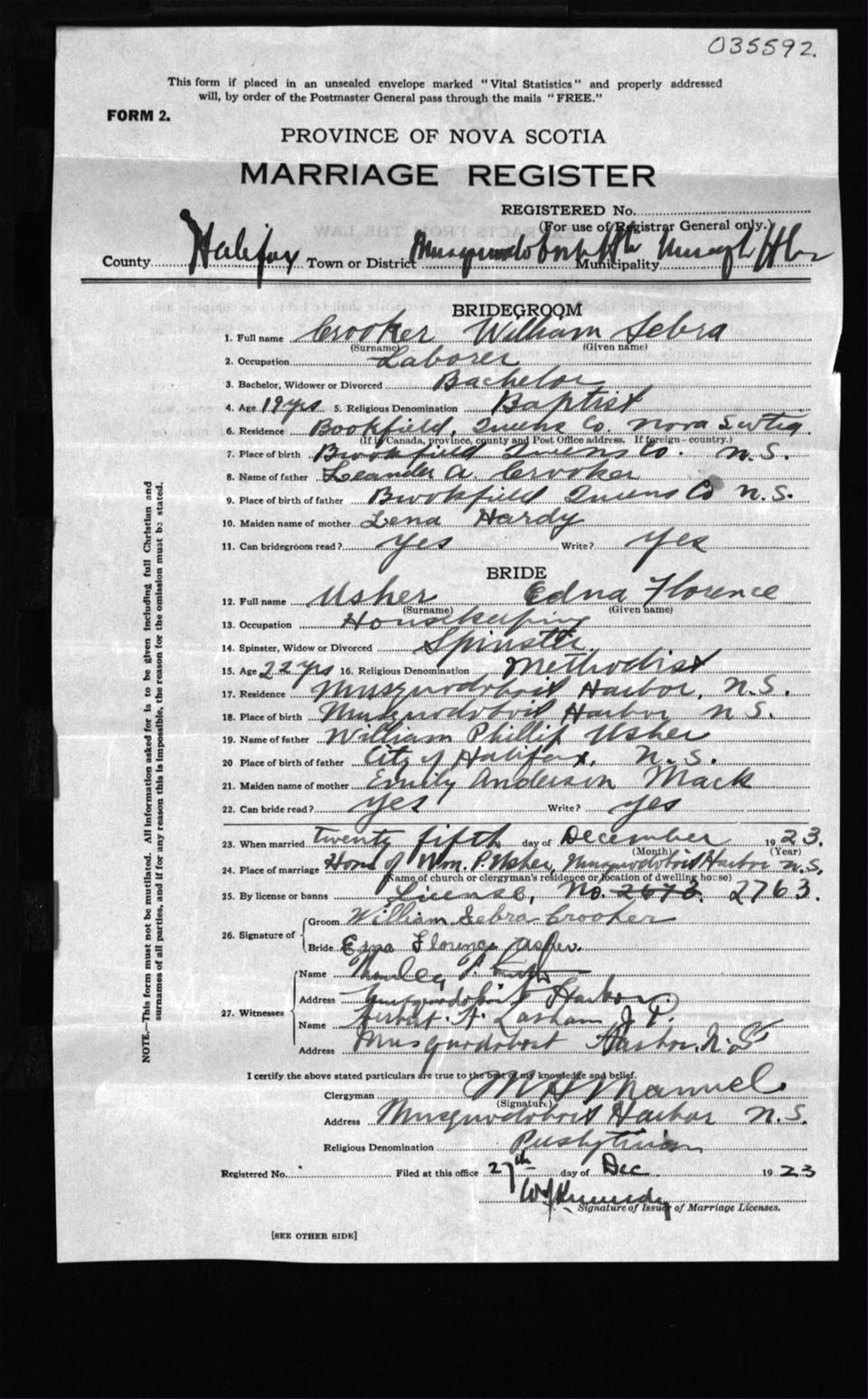 Registration: Year: 1923 number: 35592