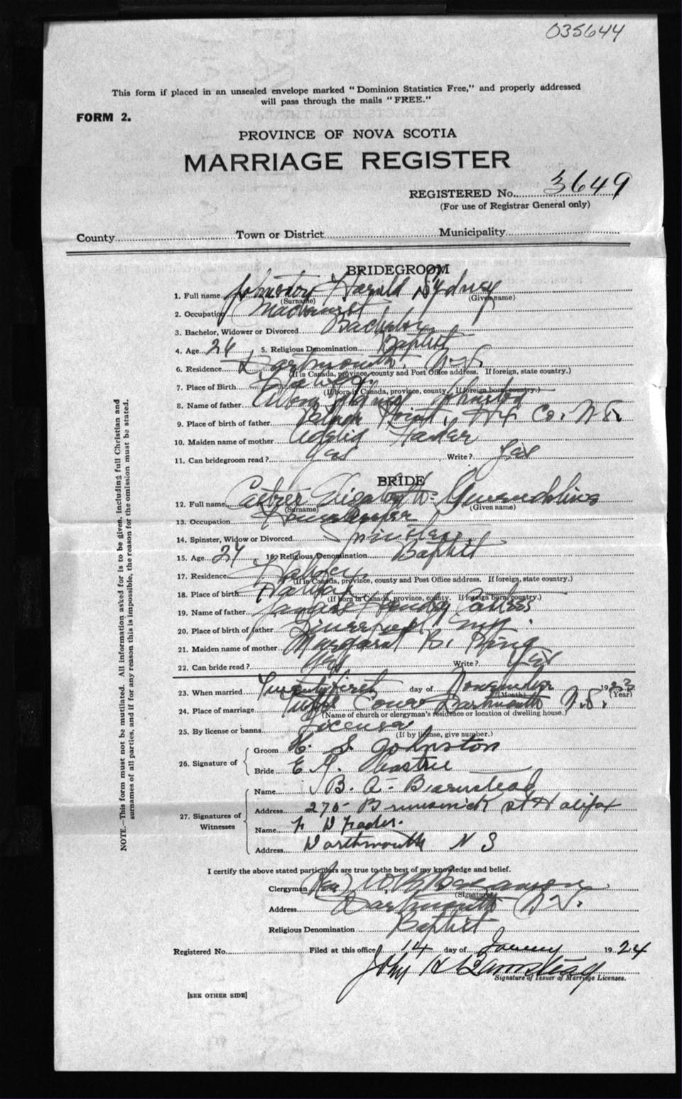 Registration: Year: 1923 number: 35644