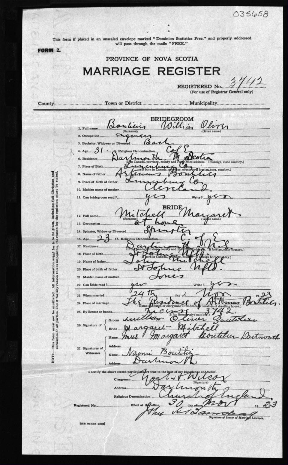Registration: Year: 1923 number: 35658