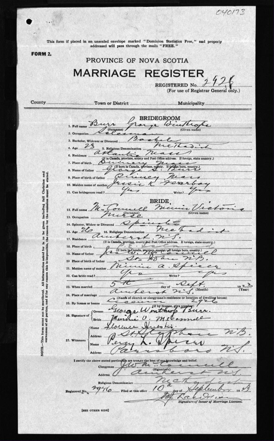 Registration: Year: 1923 number: 40173