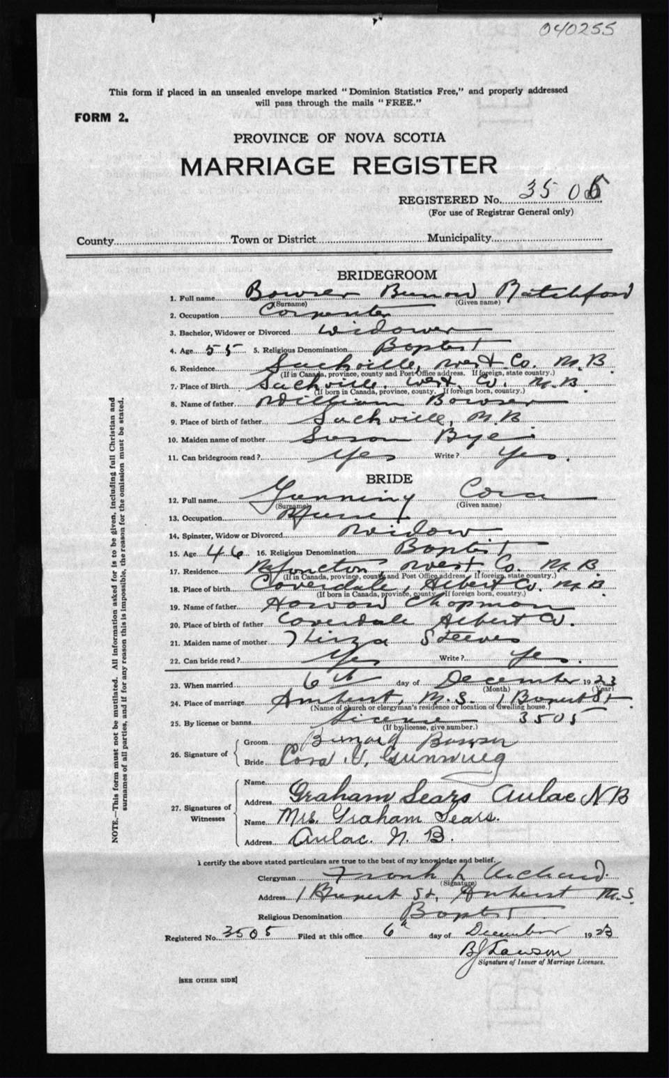 Registration: Year: 1923 number: 40255