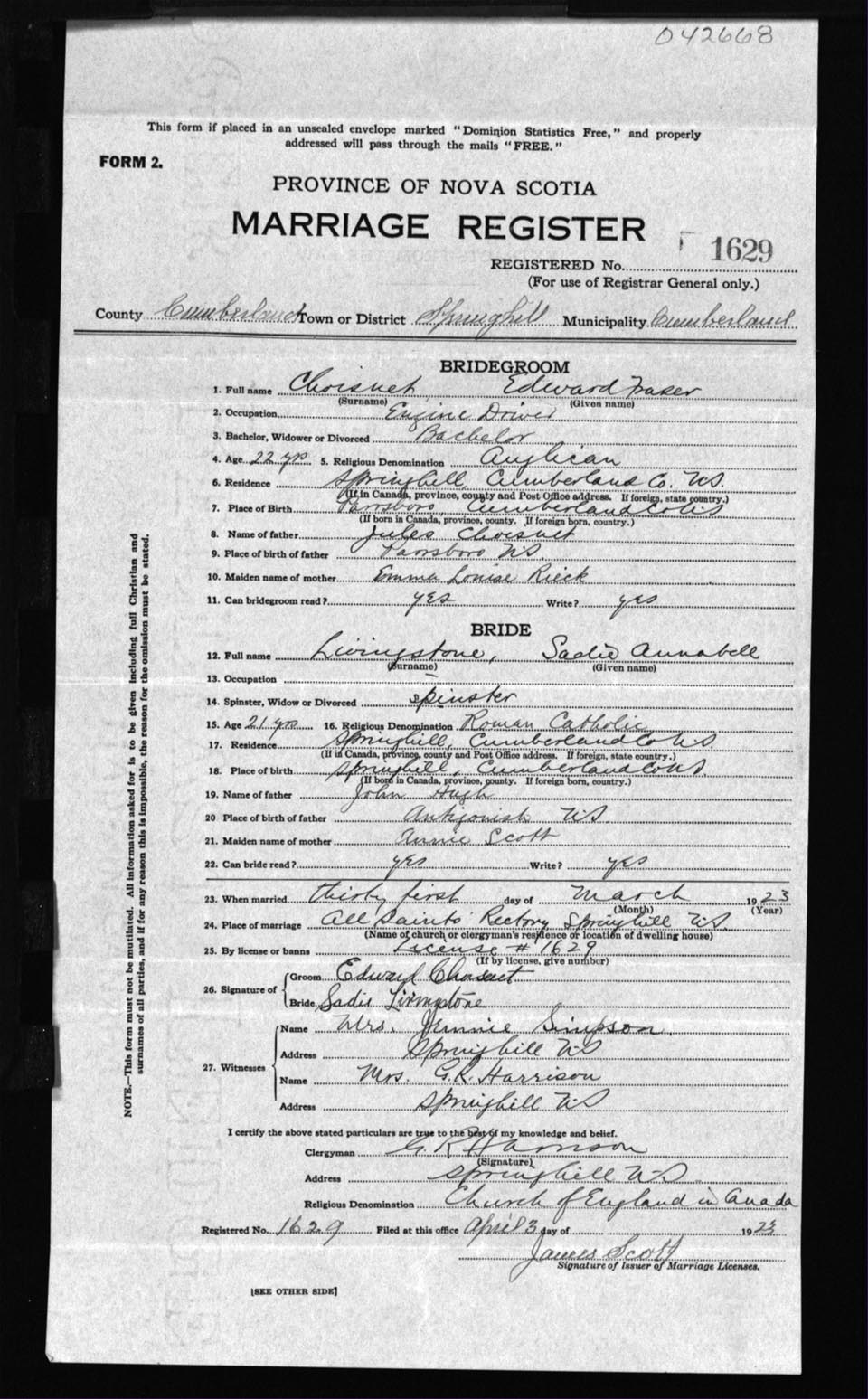Registration: Year: 1923 number: 42668