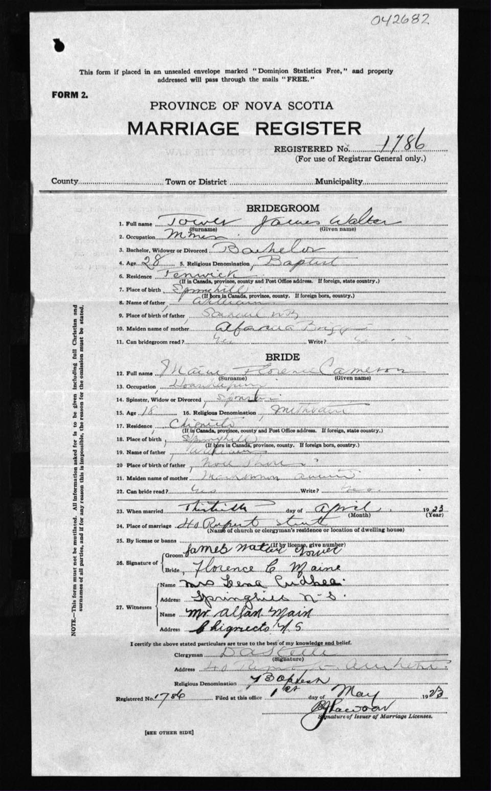 Registration: Year: 1923 number: 42682