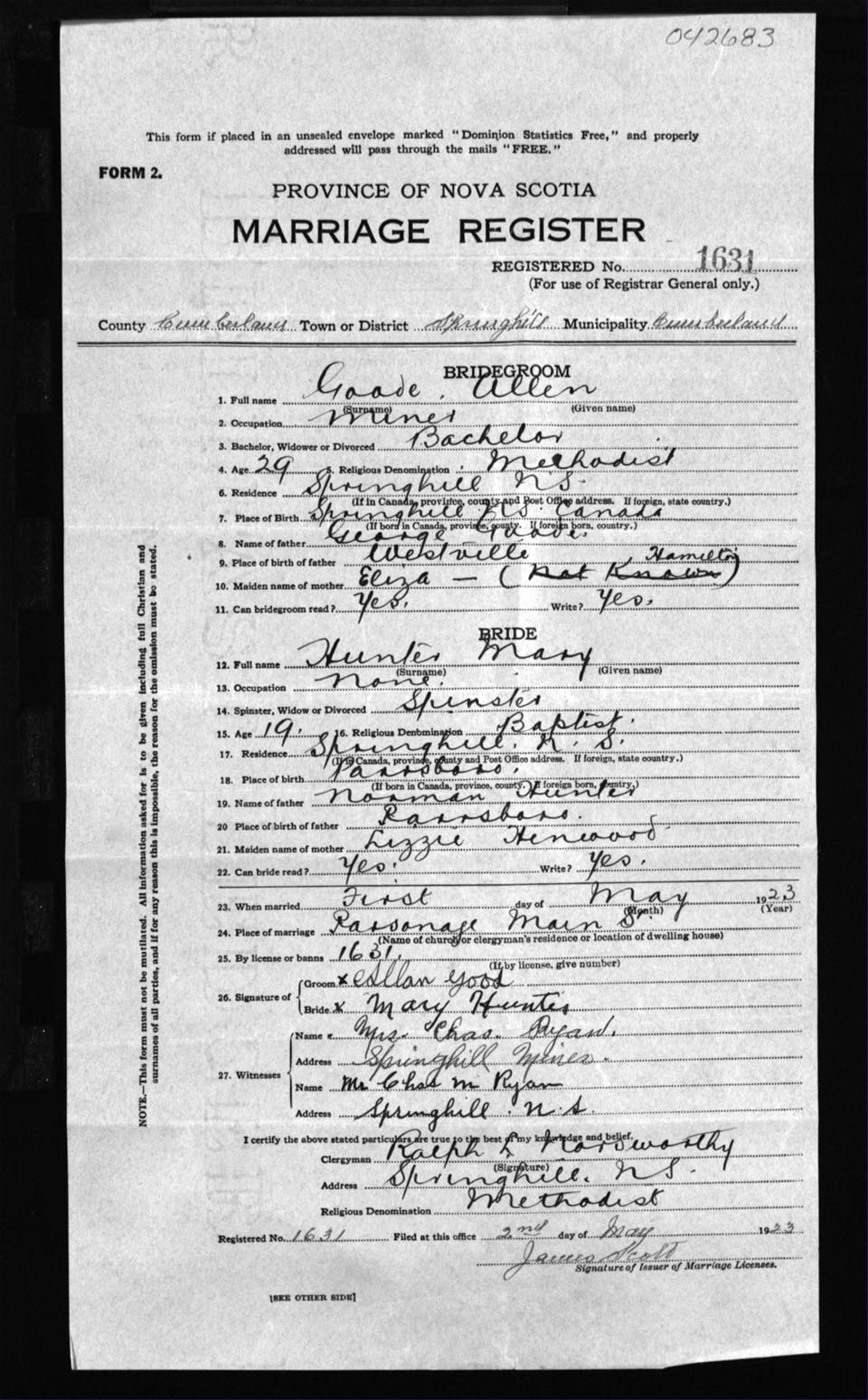 Registration: Year: 1923 number: 42683