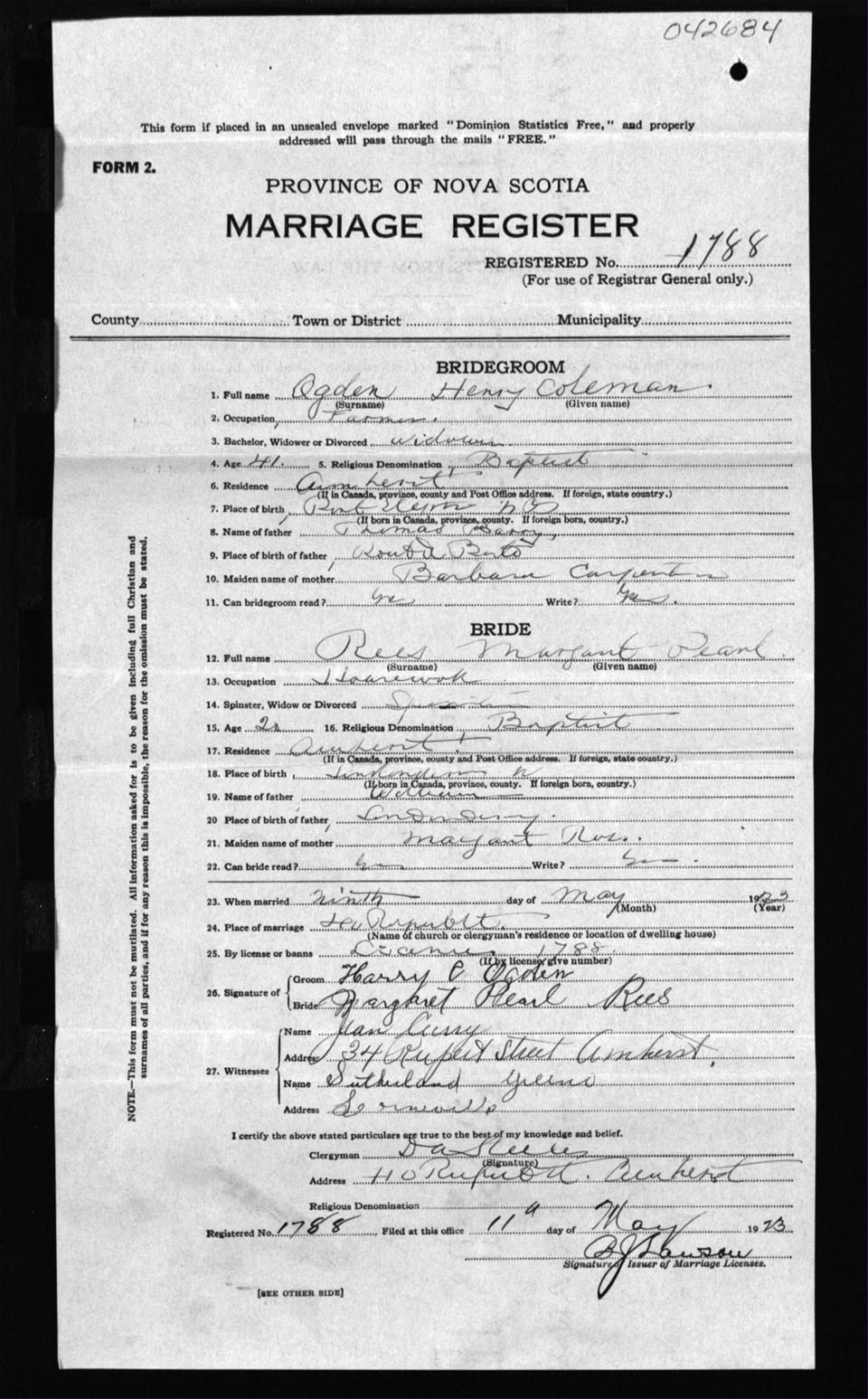 Registration: Year: 1923 number: 42684