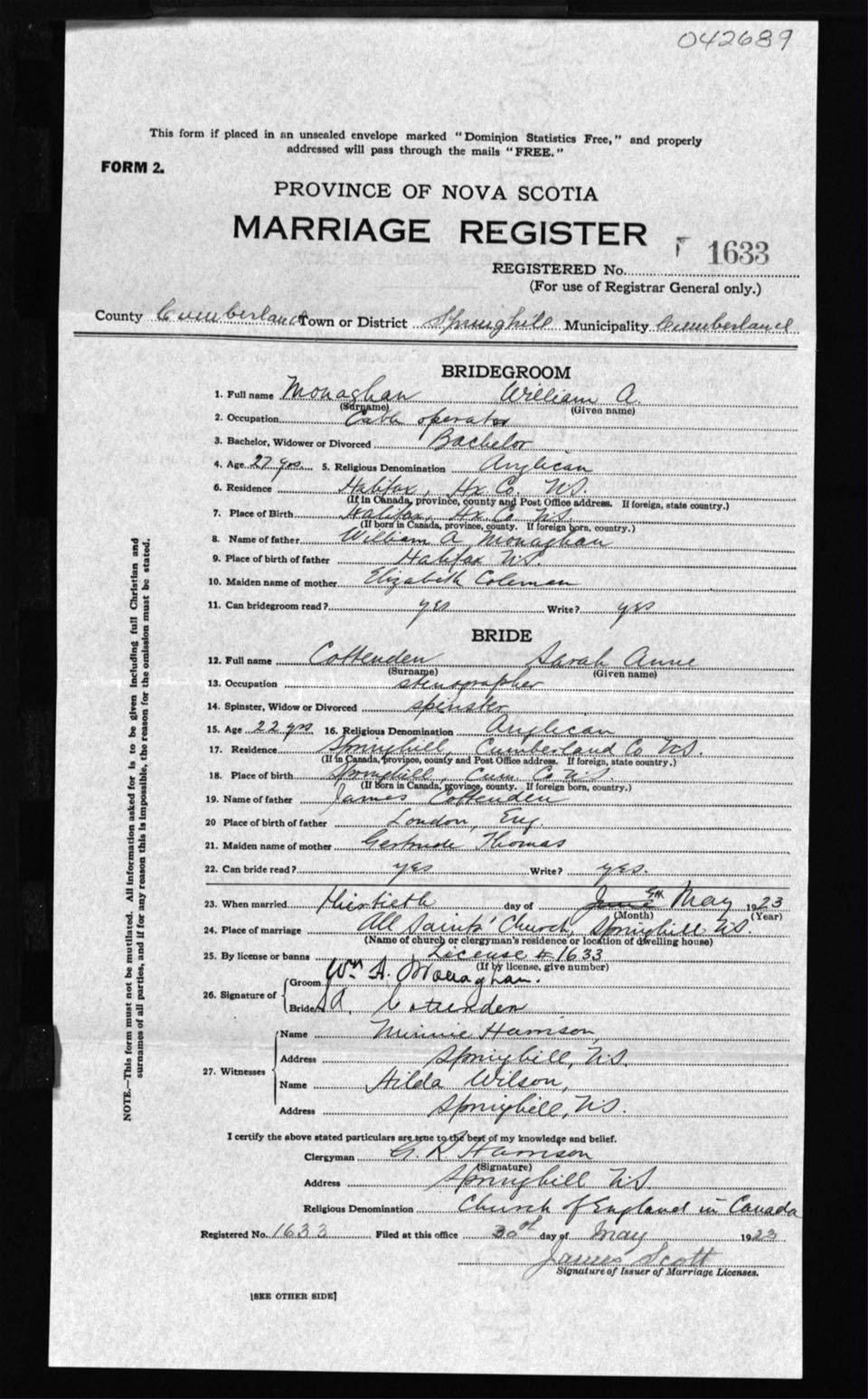 Registration: Year: 1923 number: 42689