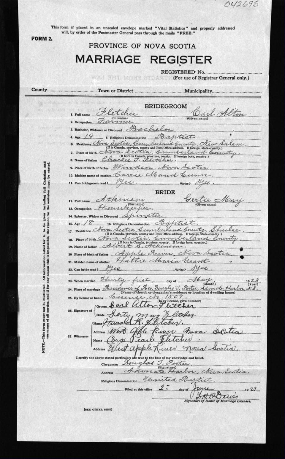 Registration: Year: 1923 number: 42695