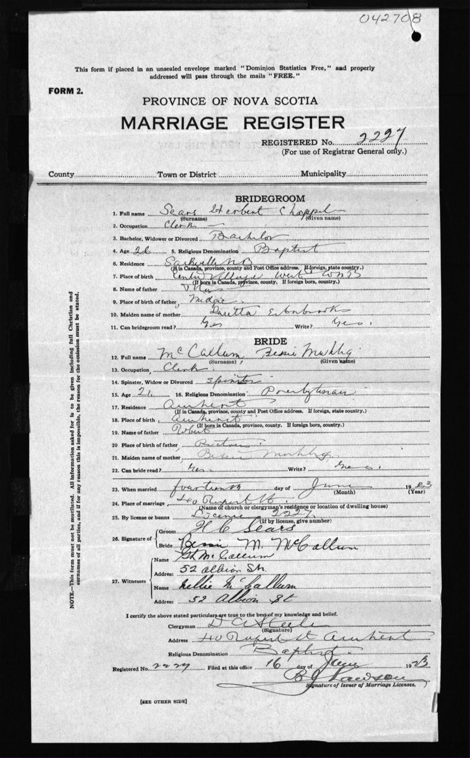 Registration: Year: 1923 number: 42708
