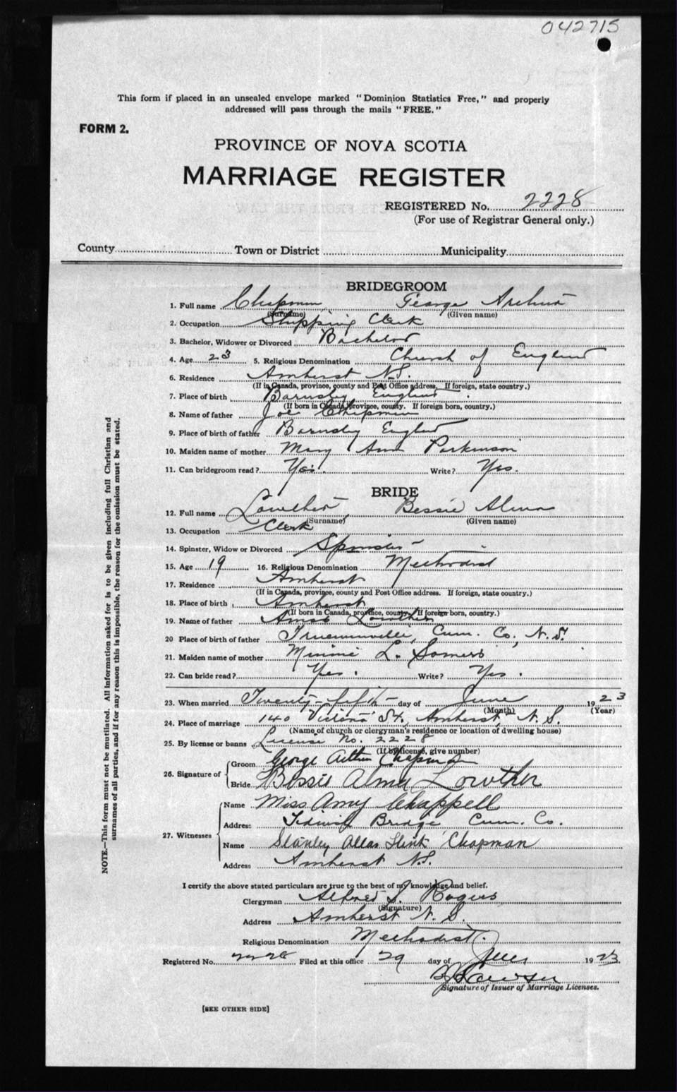 Registration: Year: 1923 number: 42715