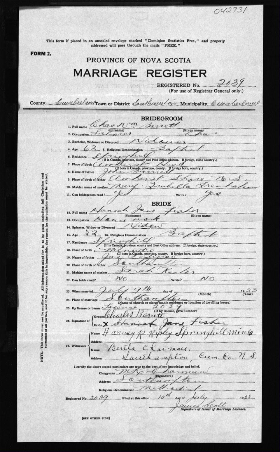 Registration: Year: 1923 number: 42731