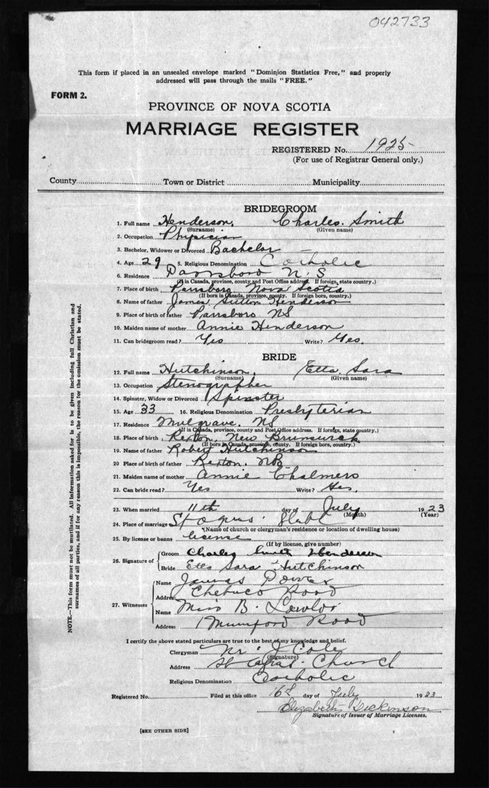 Registration: Year: 1923 number: 42733