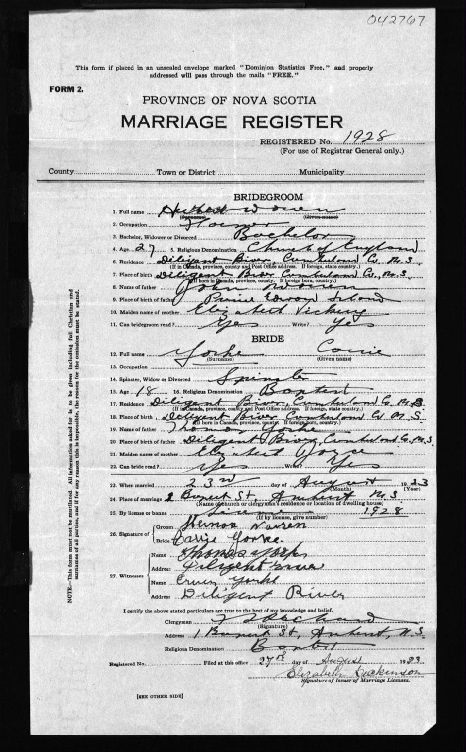 Registration: Year: 1923 number: 42767