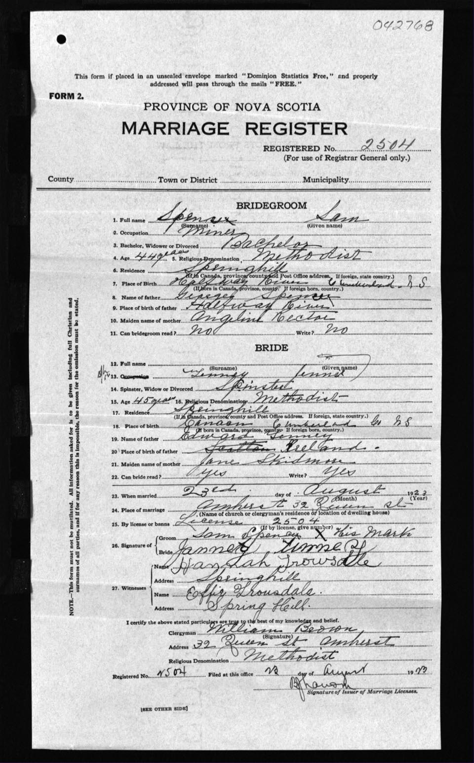 Registration: Year: 1923 number: 42768