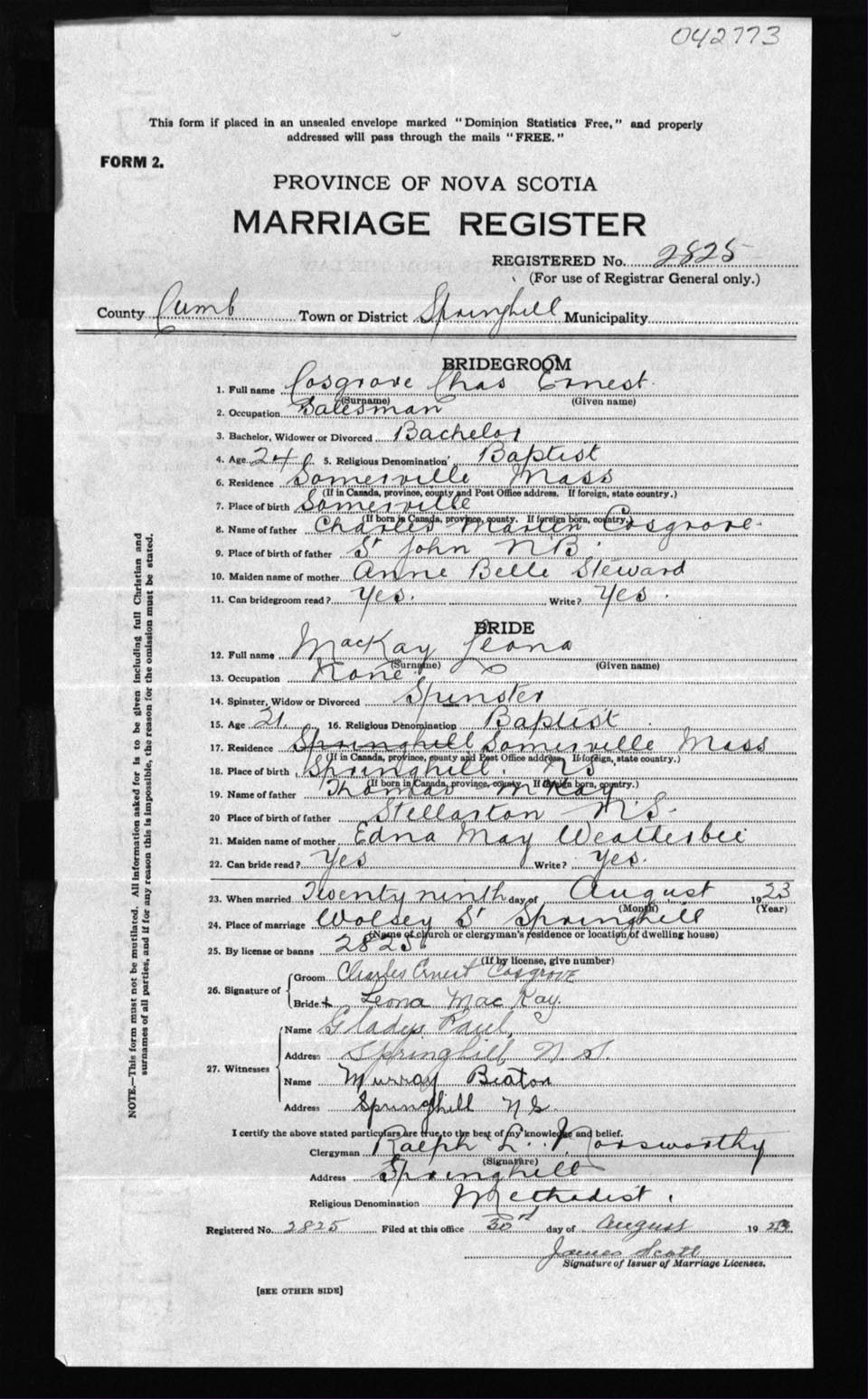 Registration: Year: 1923 number: 42773