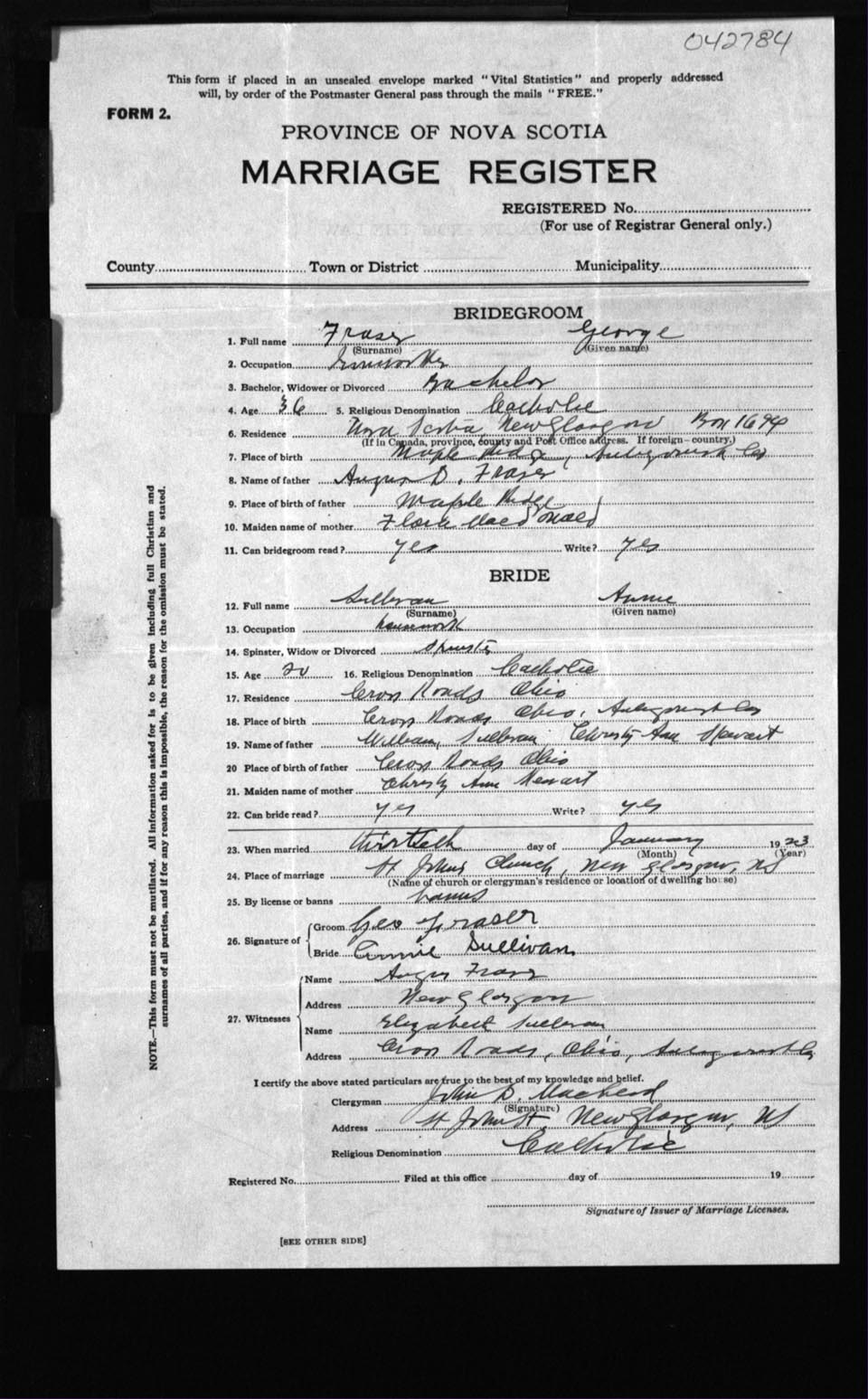 Registration: Year: 1923 number: 42784