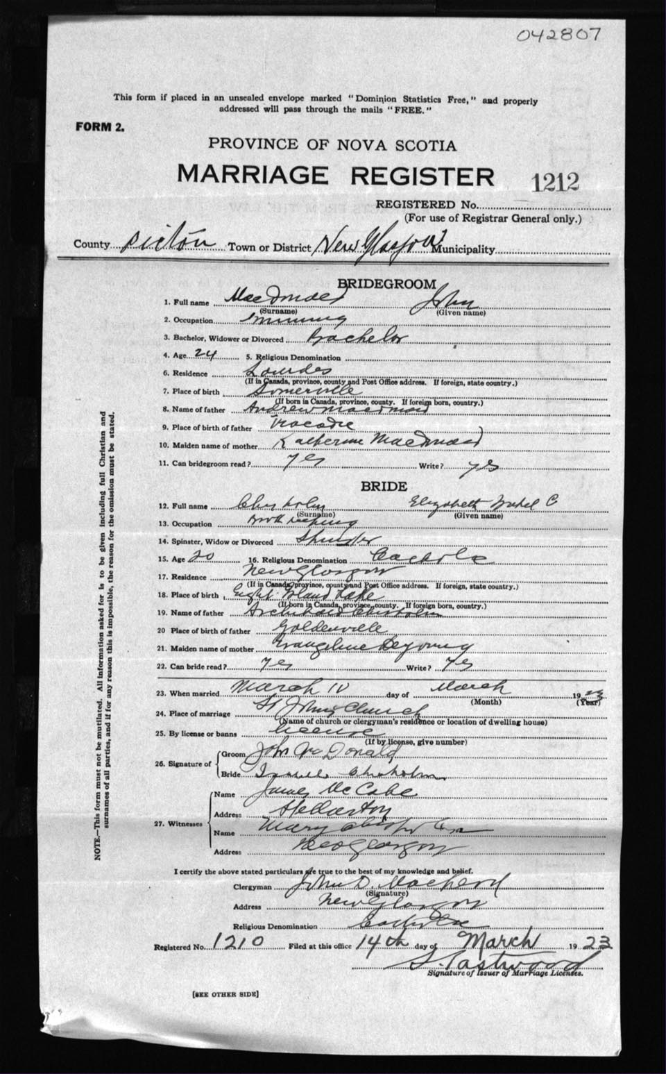 Registration: Year: 1923 number: 42807