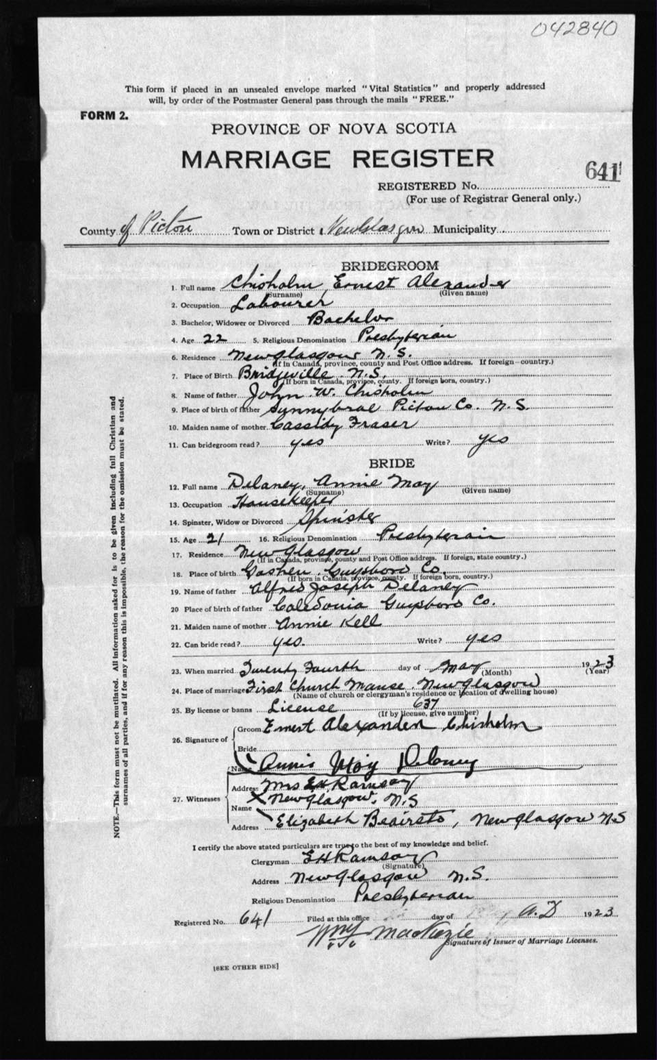 Registration: Year: 1923 number: 42840