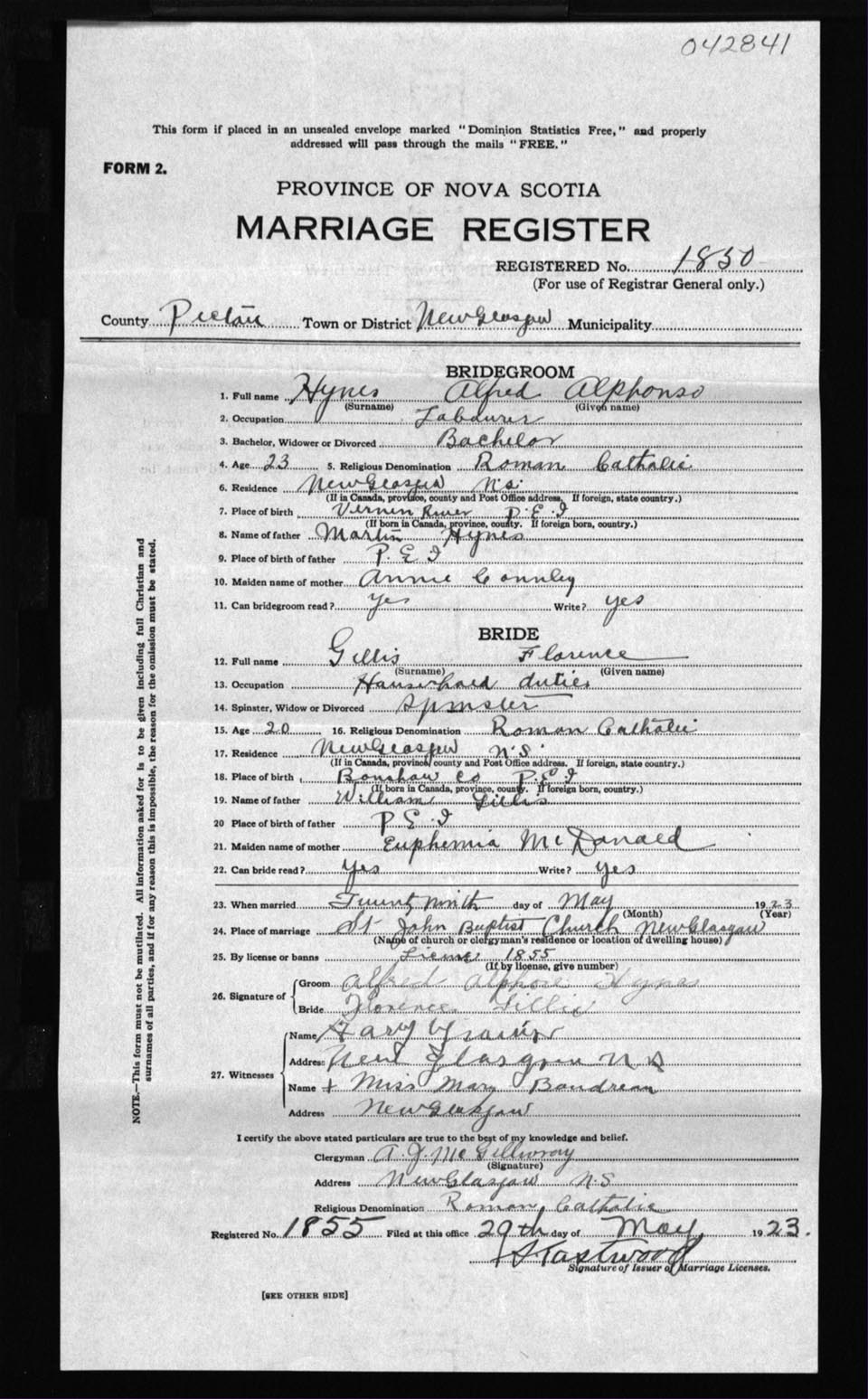 Registration: Year: 1923 number: 42841