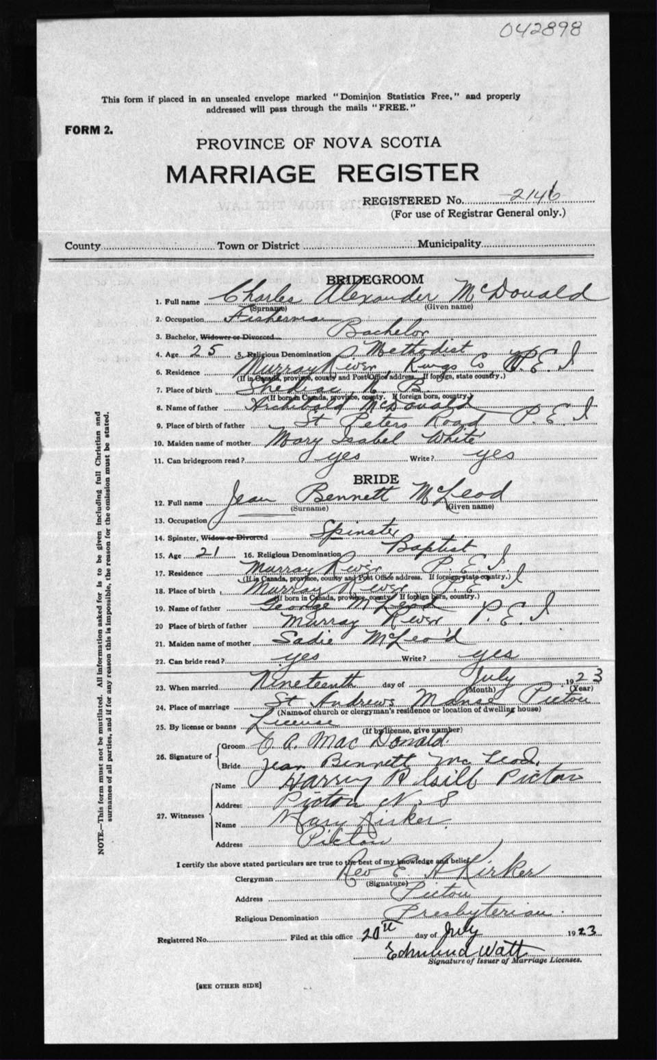 Registration: Year: 1923 number: 42898