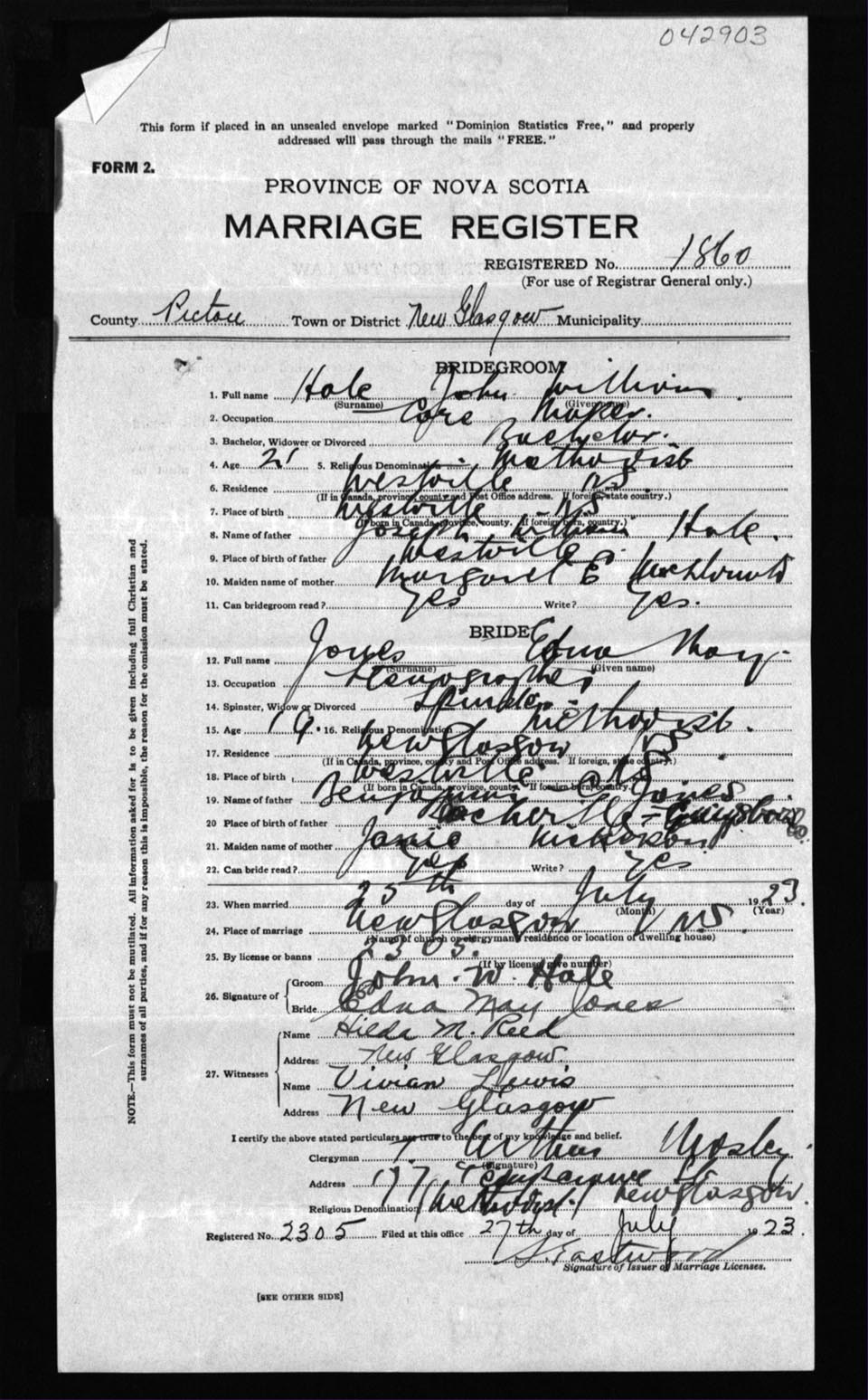 Registration: Year: 1923 number: 42903