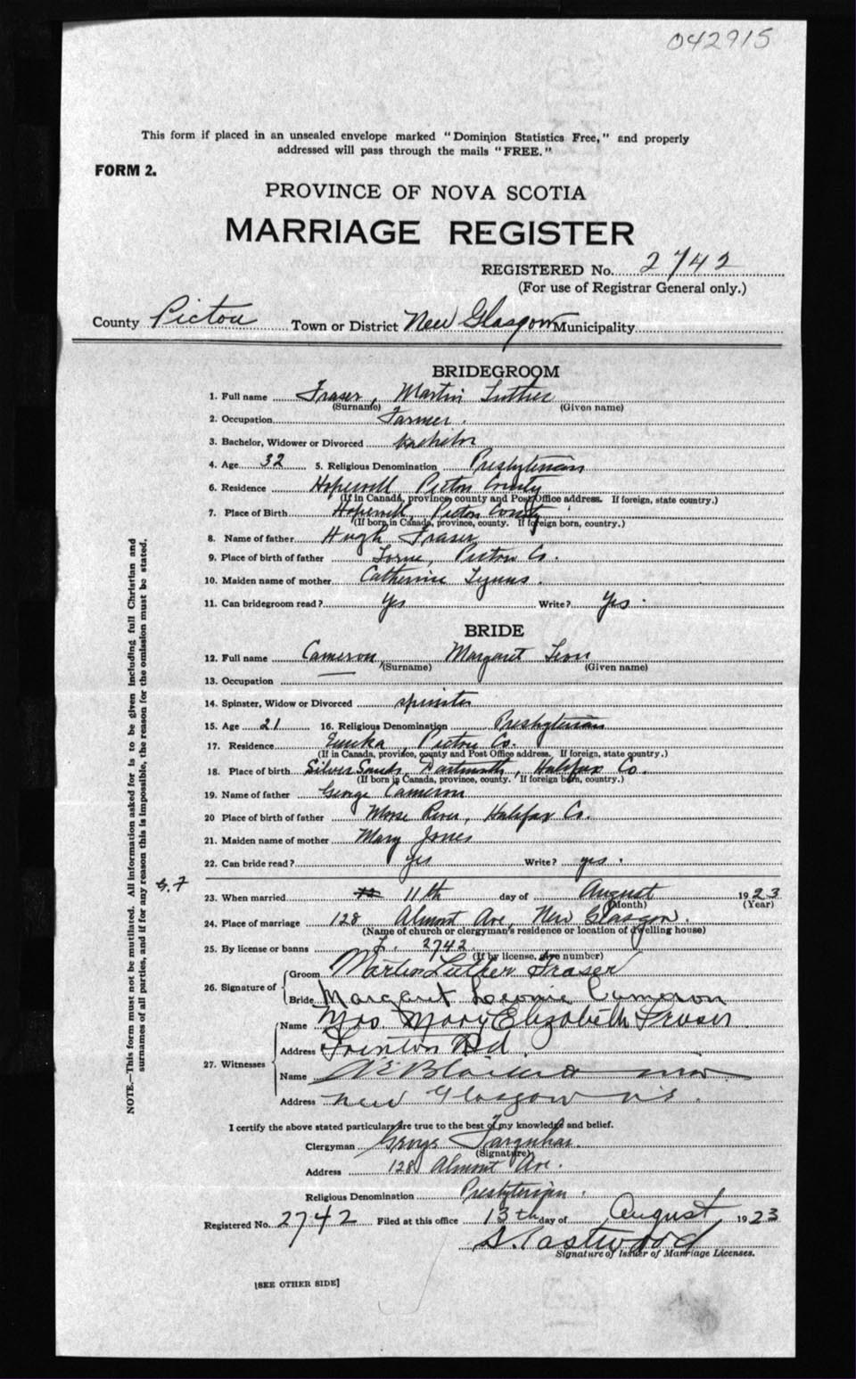Registration: Year: 1923 number: 42915