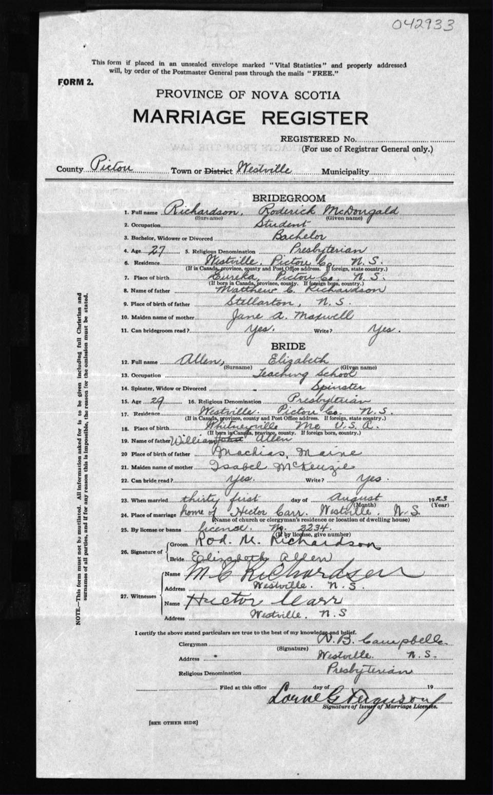 Registration: Year: 1923 number: 42933