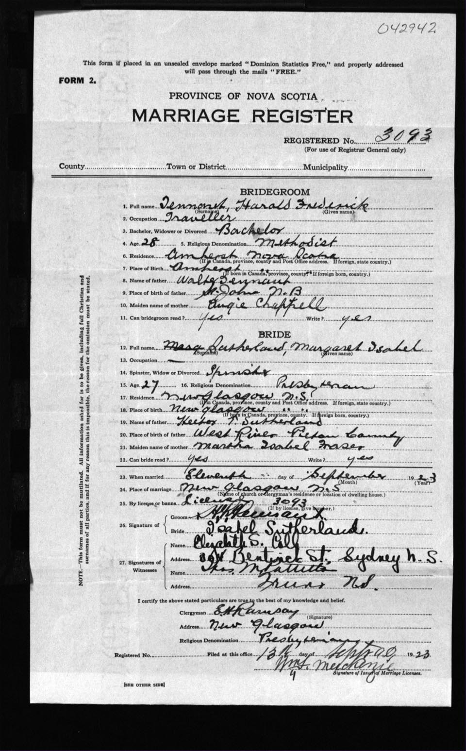 Registration: Year: 1923 number: 42942