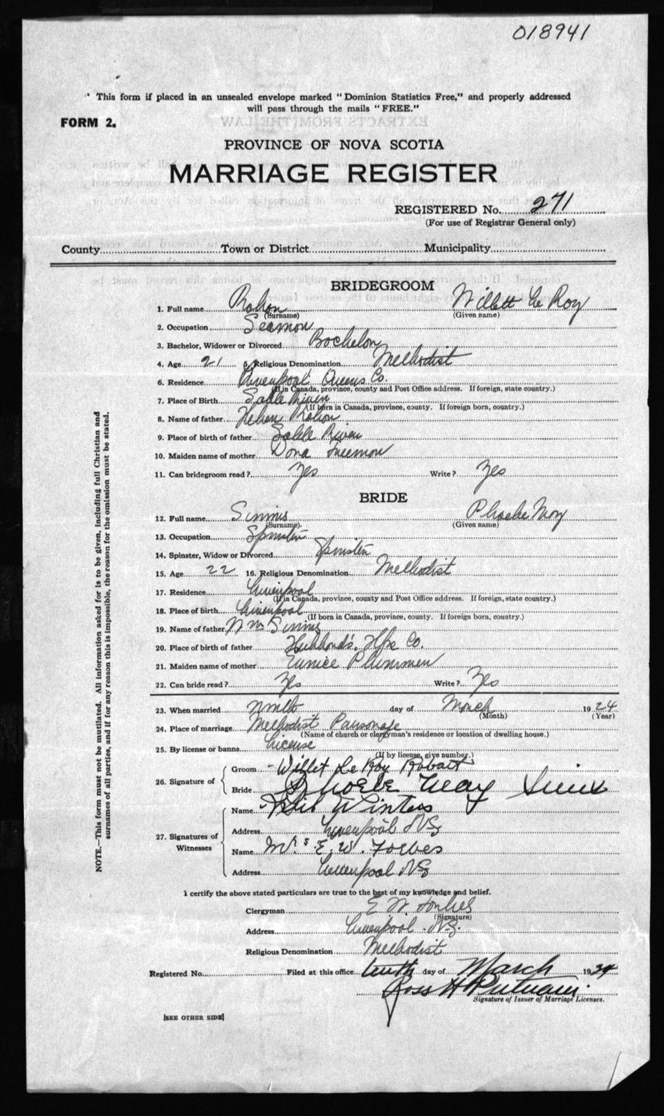 Registration: Year: 1924 number: 18941