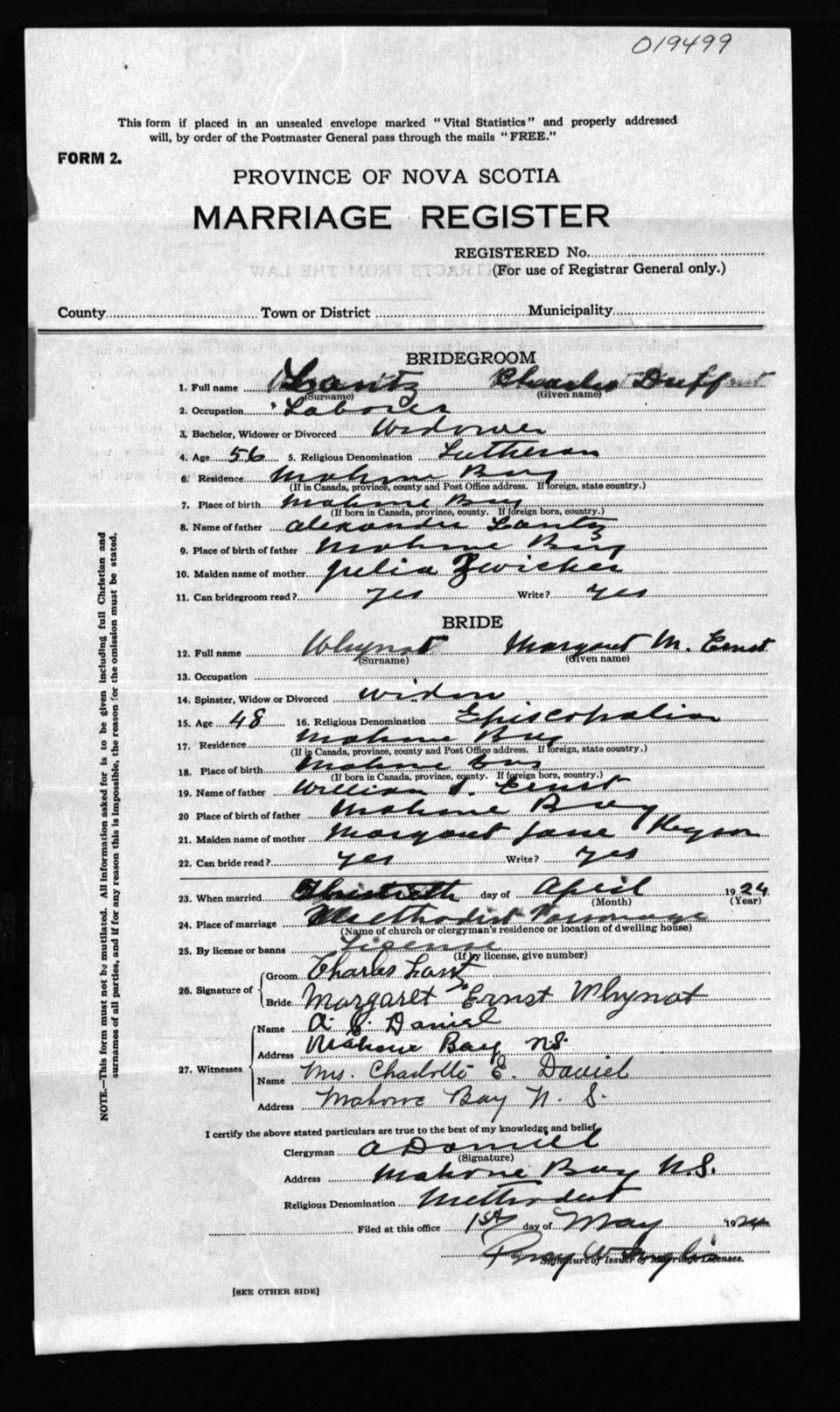 Registration: Year: 1924 number: 19499
