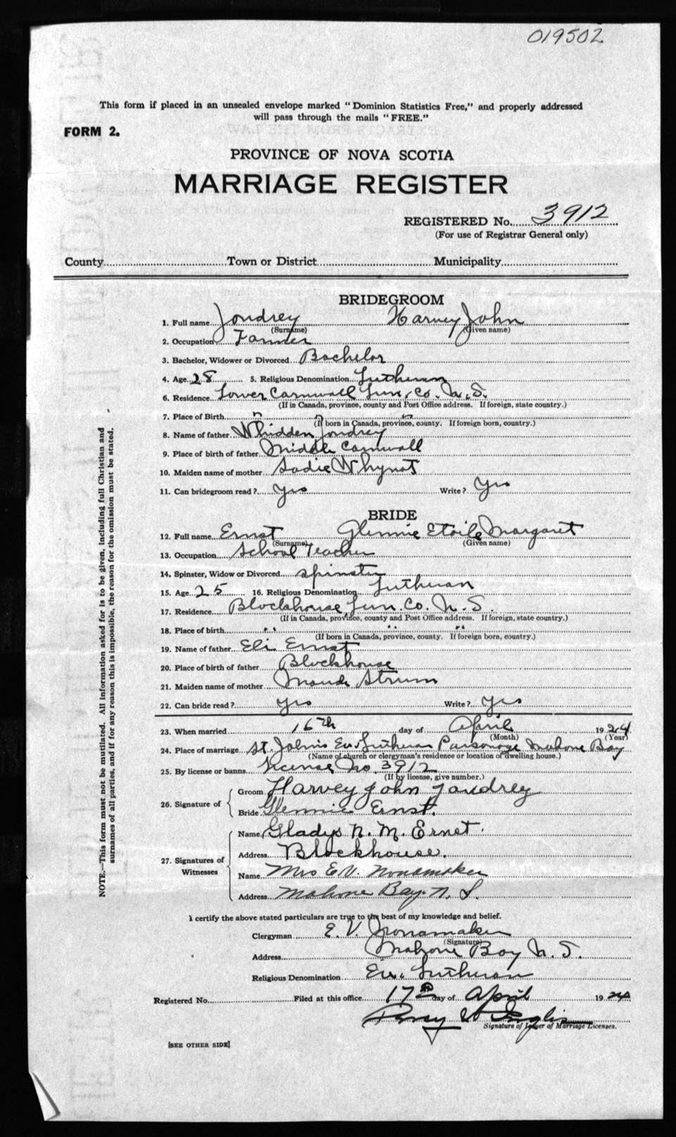 Registration: Year: 1924 number: 19502