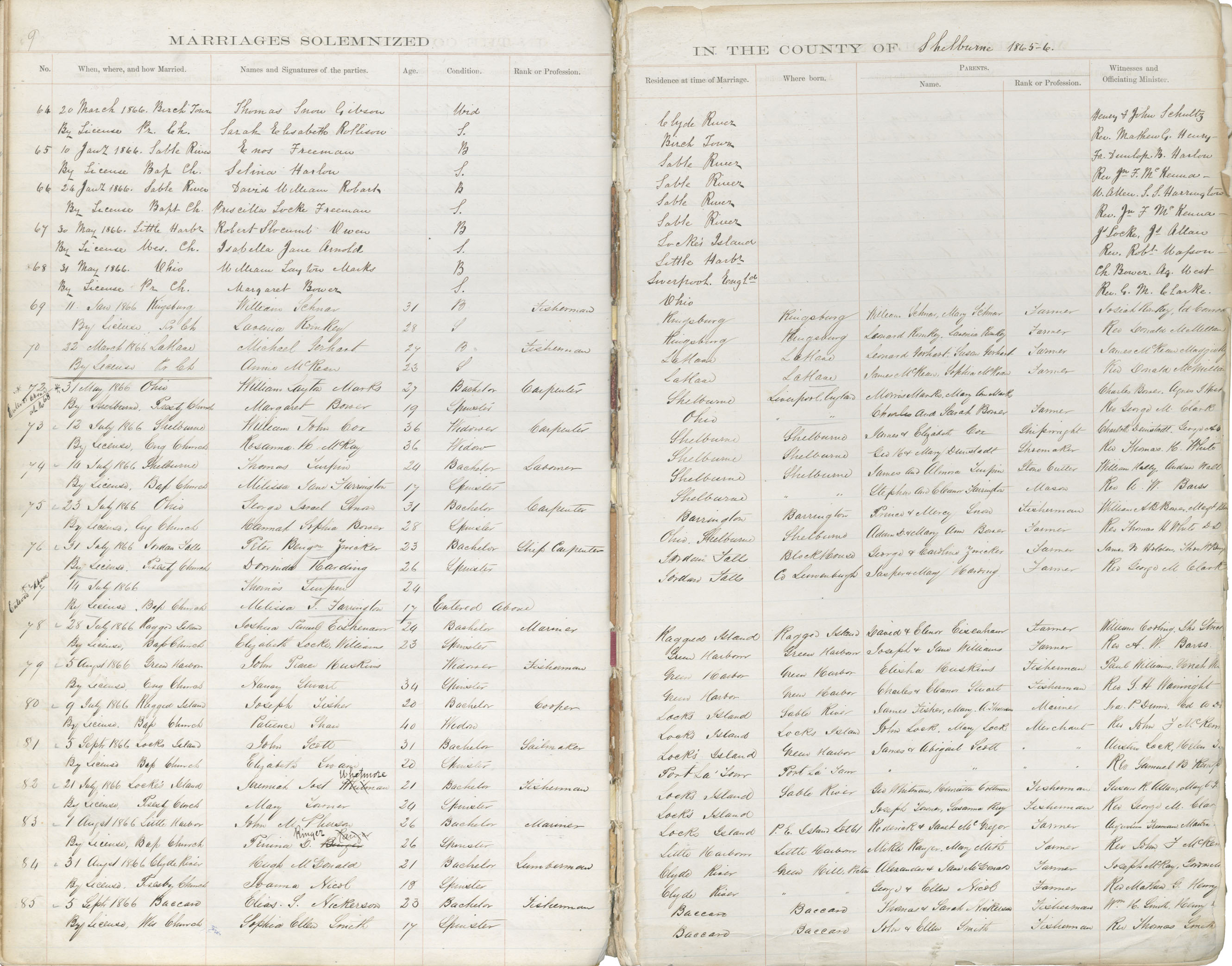 Registration: Year: 1866 book: 1836 page: 9 number: 85
