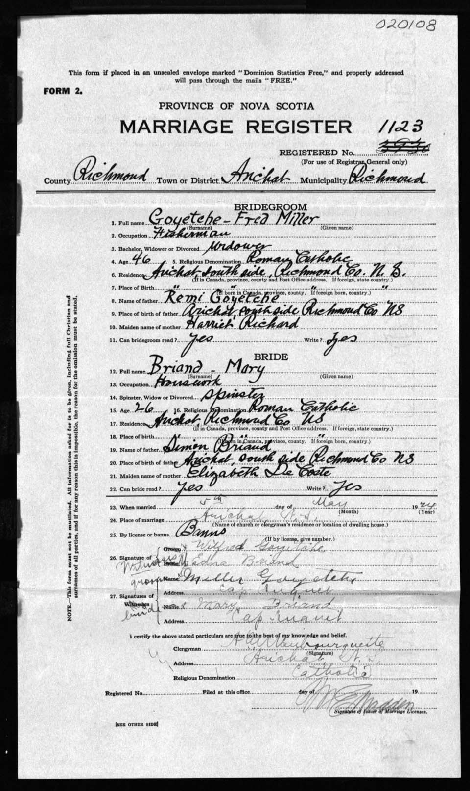 Registration: Year: 1924 number: 20108