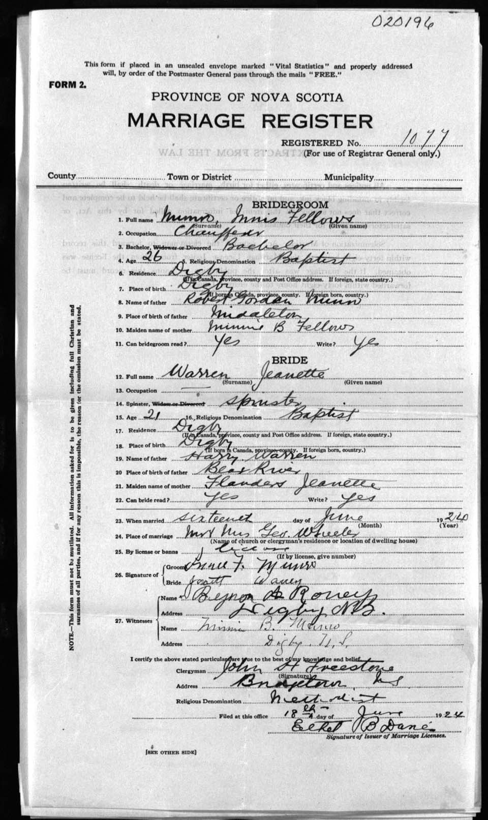 Registration: Year: 1924 number: 20196