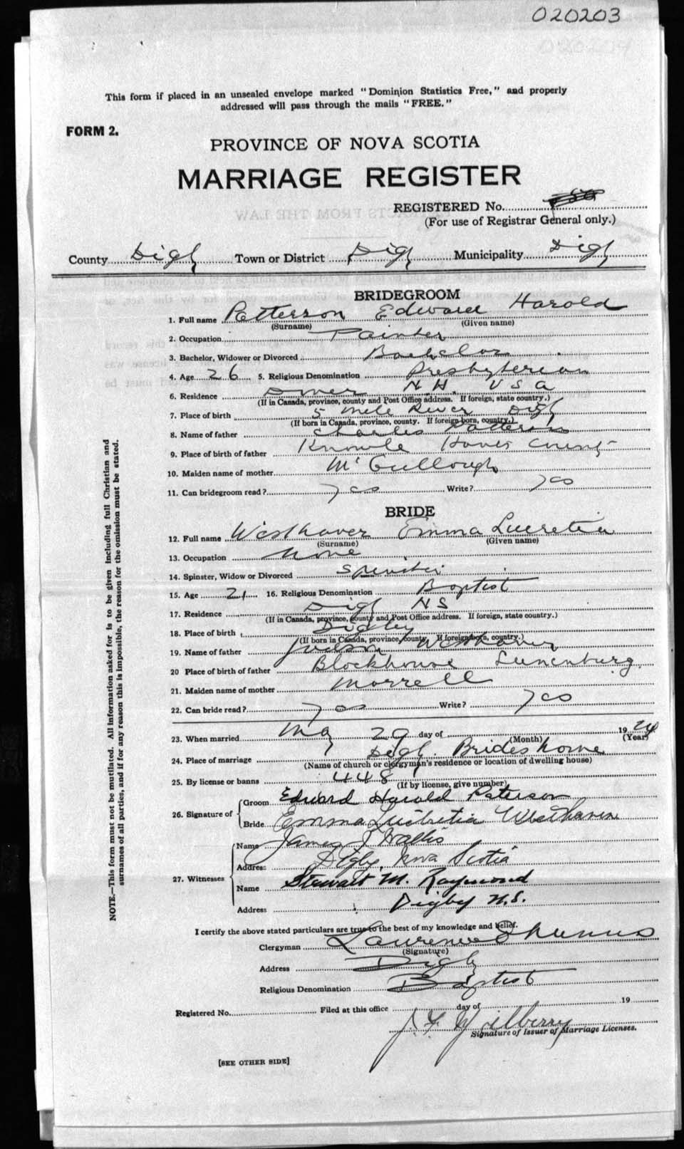 Registration: Year: 1924 number: 20203